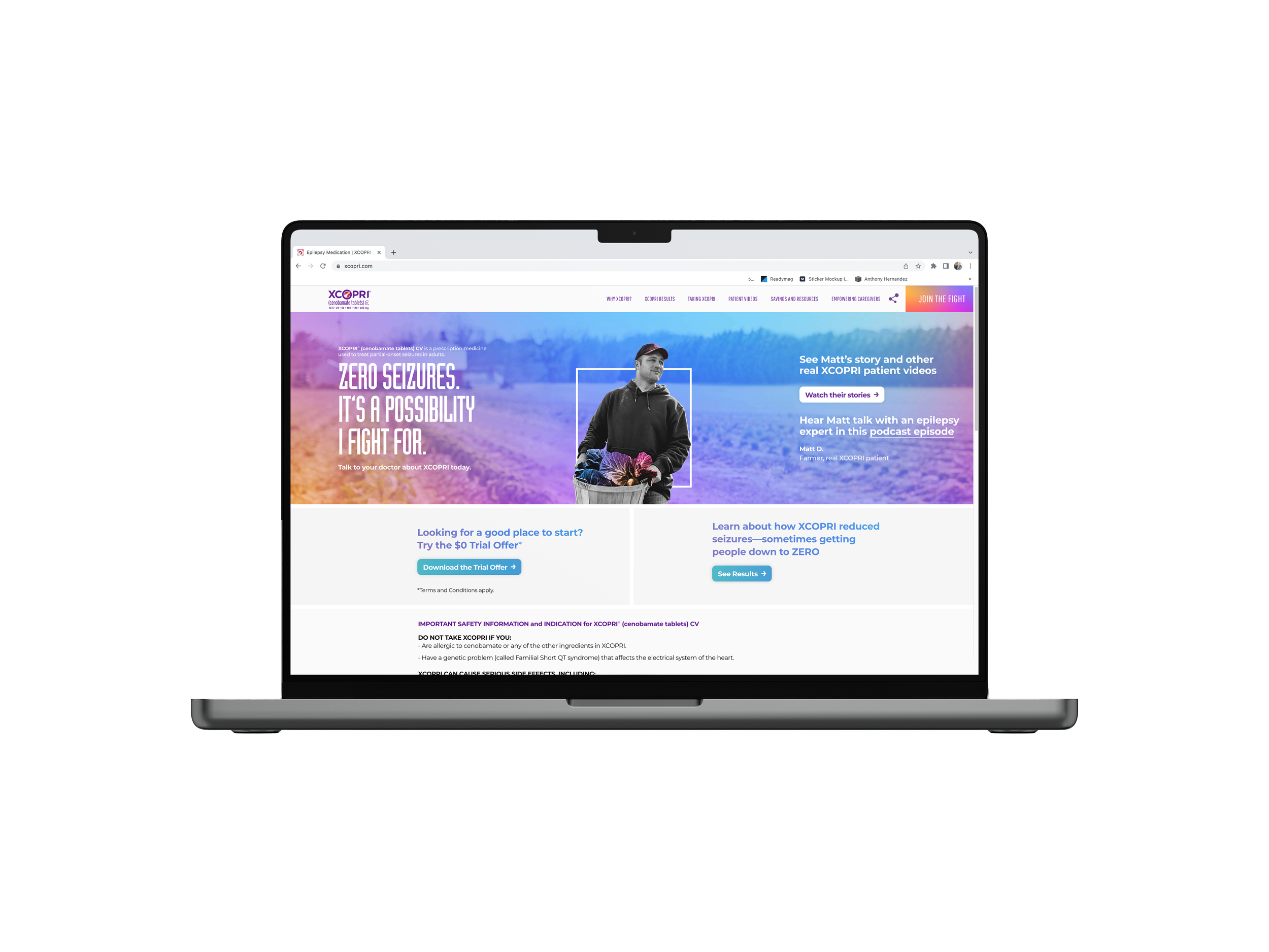 The XCOPRI Patient website was created to teach patients about the benefits of XCOPRI. Through the site we portray the patient as a fighter, in the fight against epilepsy and we ask patients to join the fight.